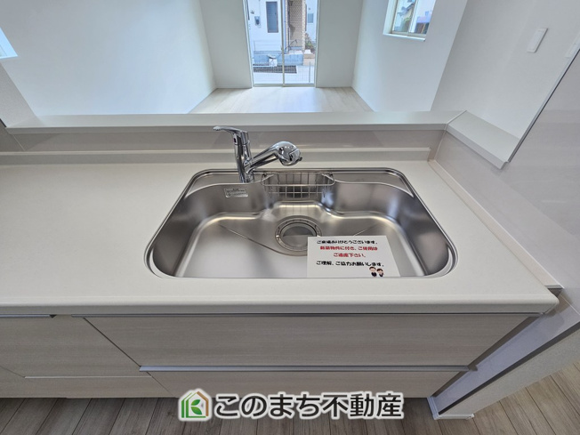 お洒落なホワイト天板のペニンシュラキッチンを採用しております。 浄水器内蔵の水栓です♪