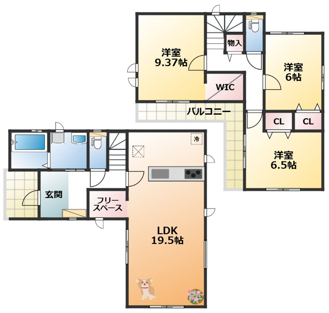 洋室はお手入れのしやすいフローリング仕様です。普段はフロアモップなどを使って、簡単にお掃除していただけます◎
